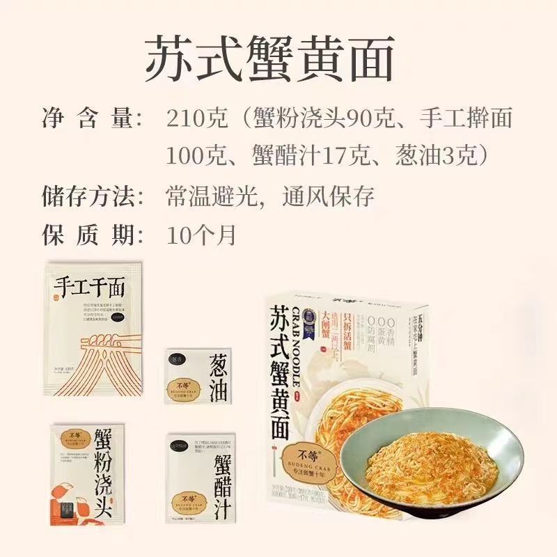不等10年專注蘇式蟹黃面 真材實料看得見方便速食拌面精美盒裝 質保10月