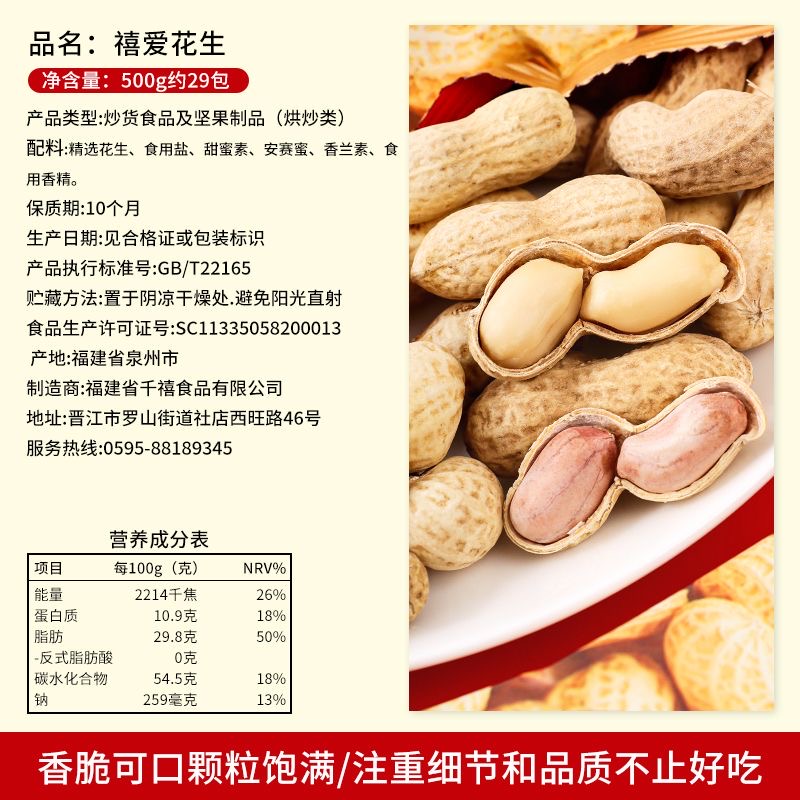 千禧园好事花生 散装,500克约29包,1000克约37包,质保10个月
