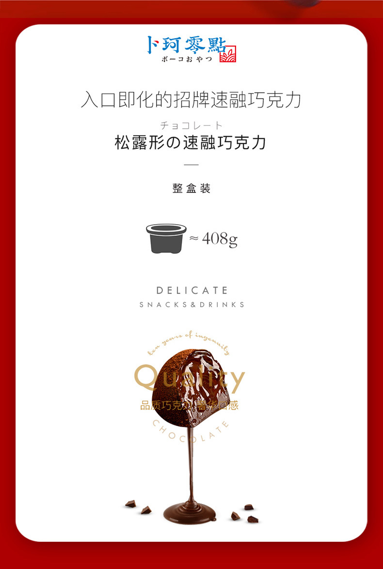 卜珂松露型黑巧克力408g碗装网红零食糖果送女友(代可可脂)