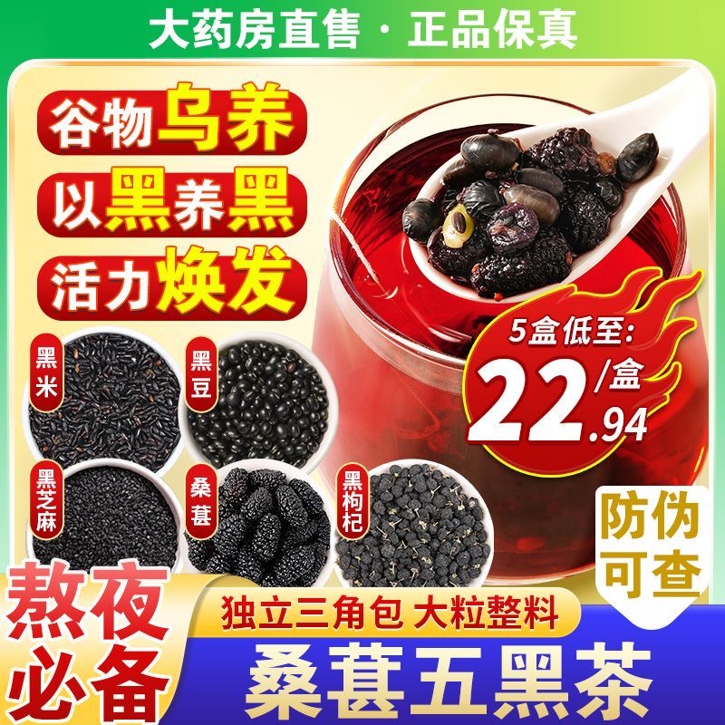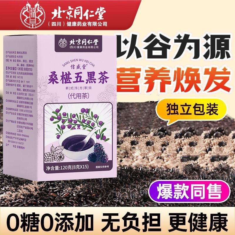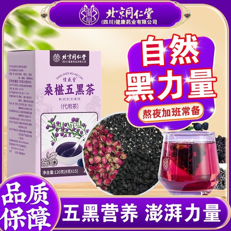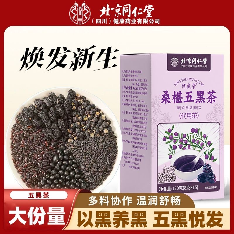 同仁堂桑椹五黑茶 代用茶,無糖 120克/盒,一盒內含15小包,質保18個月