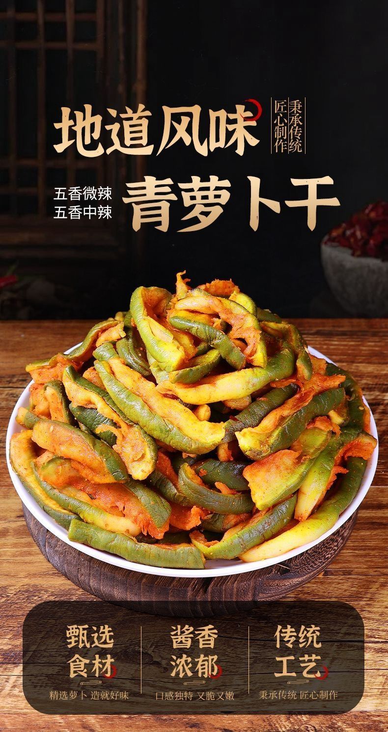 山東正宗香脆可口五香濰坊蘿卜干香辣開胃特產腌制水果蘿卜干條可即食 質保9個月