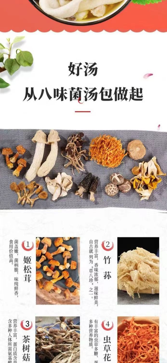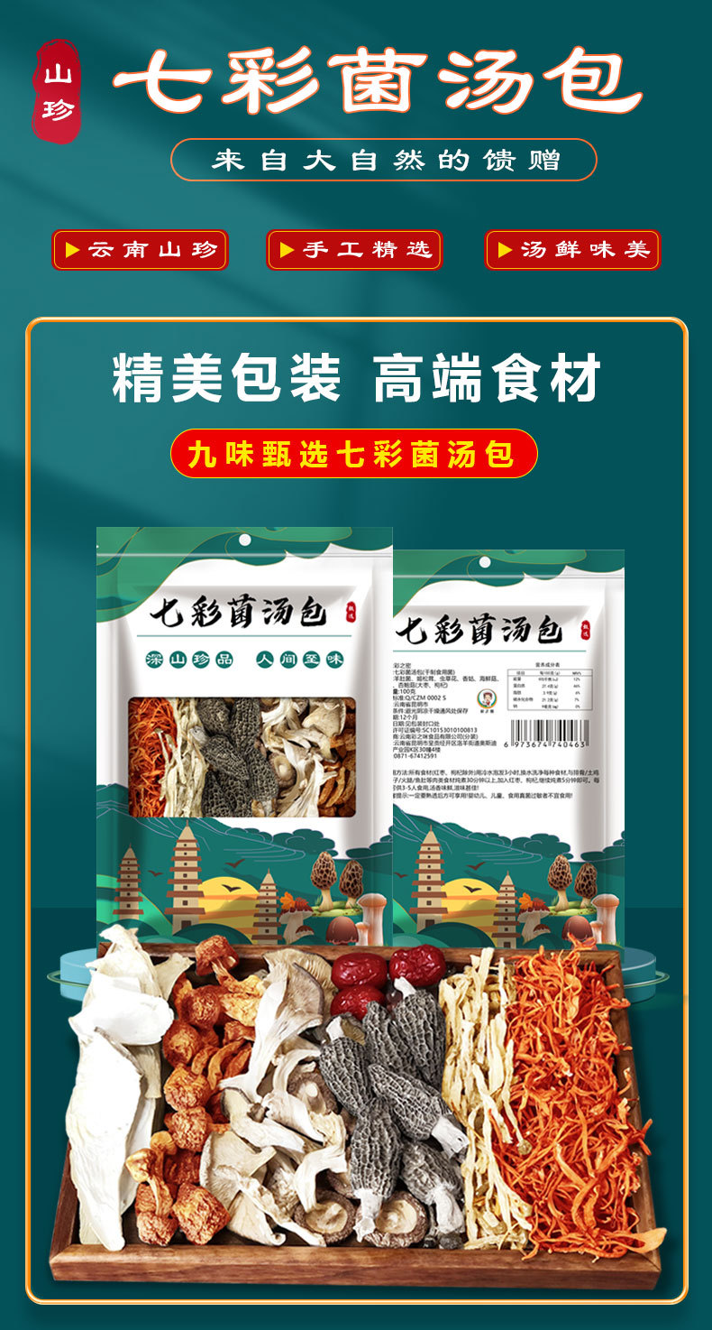 山珍菌菇七彩菌汤包云南野生炖汤鲜羊肚菌鹿茸菇干货 100克包 可定制 質保12個月