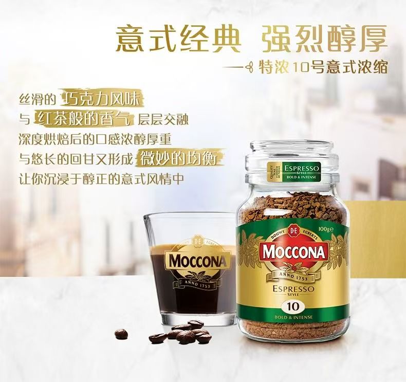 摩可納Moccona荷蘭進口速溶深度烘焙咖啡美式凍干咖啡粉 100克/罐 質保2年