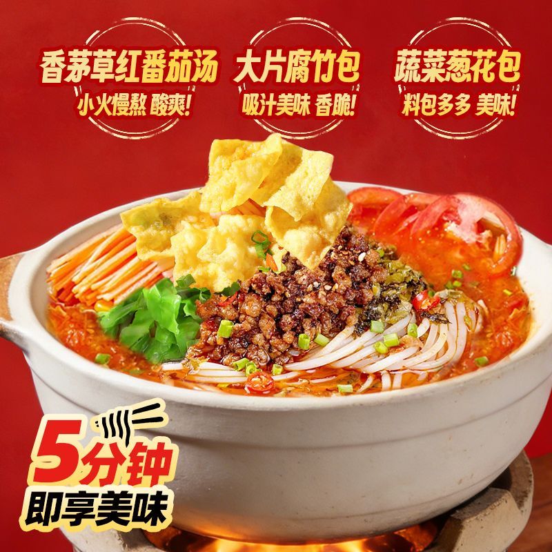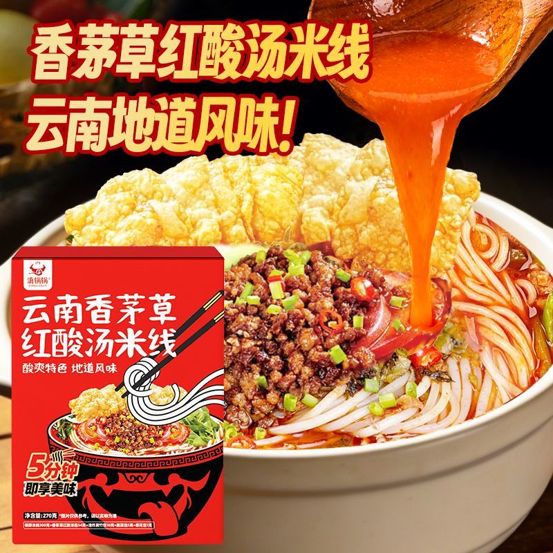 滇鍋鍋云南香茅草紅酸湯米線270克/盒 免煮早餐小鍋宵夜方便酸辣速食粉絲 質保7個月