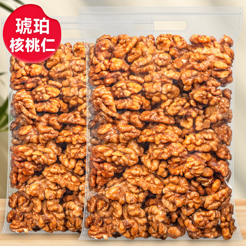 琥珀核桃仁坚果零食营养解馋散装即食薄皮袋装新鲜去皮烘烤 質保6月