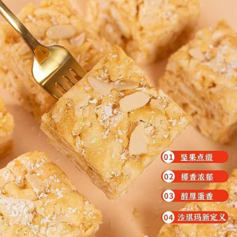 白天鵝同款傳統手工欖仁沙琪瑪飽腹解饞休閑小零食精美伴手禮盒裝可早餐下午茶點心