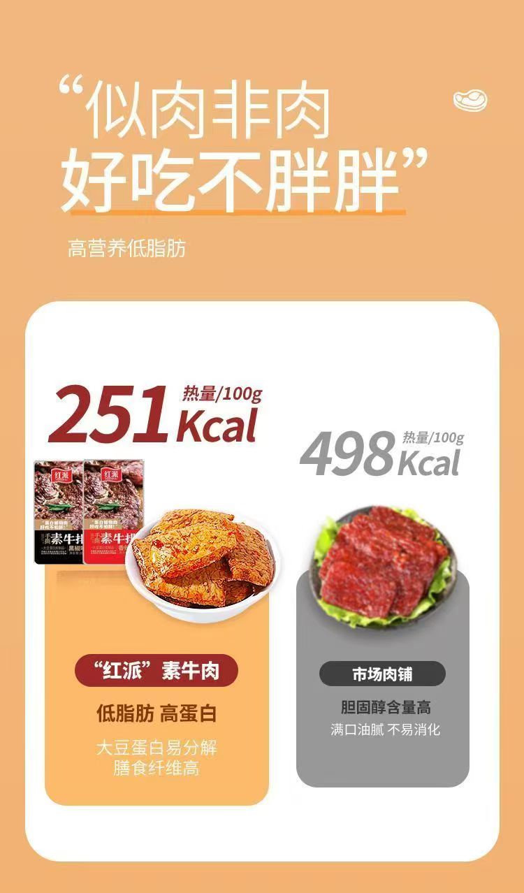 红派黑椒香辣素牛排大片独立包装零售素牛肉豆干休闲辣块商超同款 质保9个月