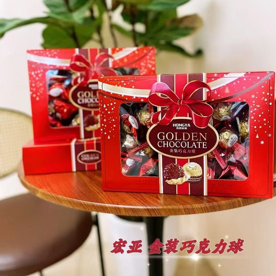 香港宏亚 金装巧克力果仁脆心球208g高级喜糖年货喜庆伴手礼搭配
