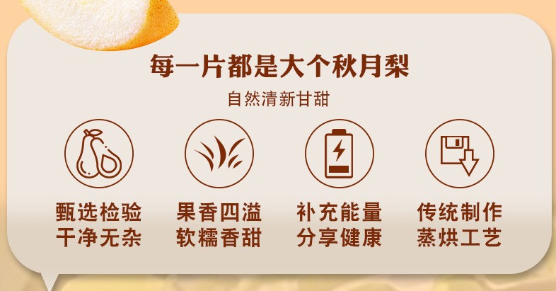 每片相當于半個梨子,0添加,Q彈肉實,獨立包裝。