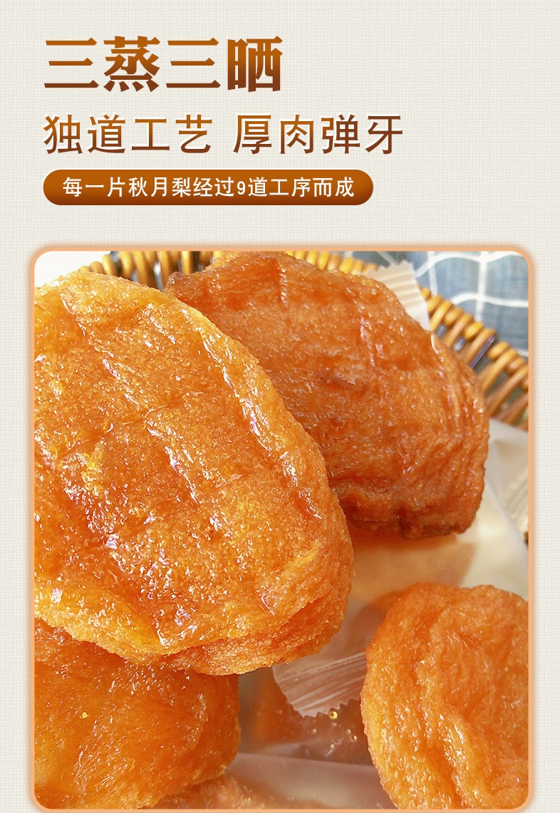 精選山東萊陽秋月梨精制,古法三蒸三曬而成。