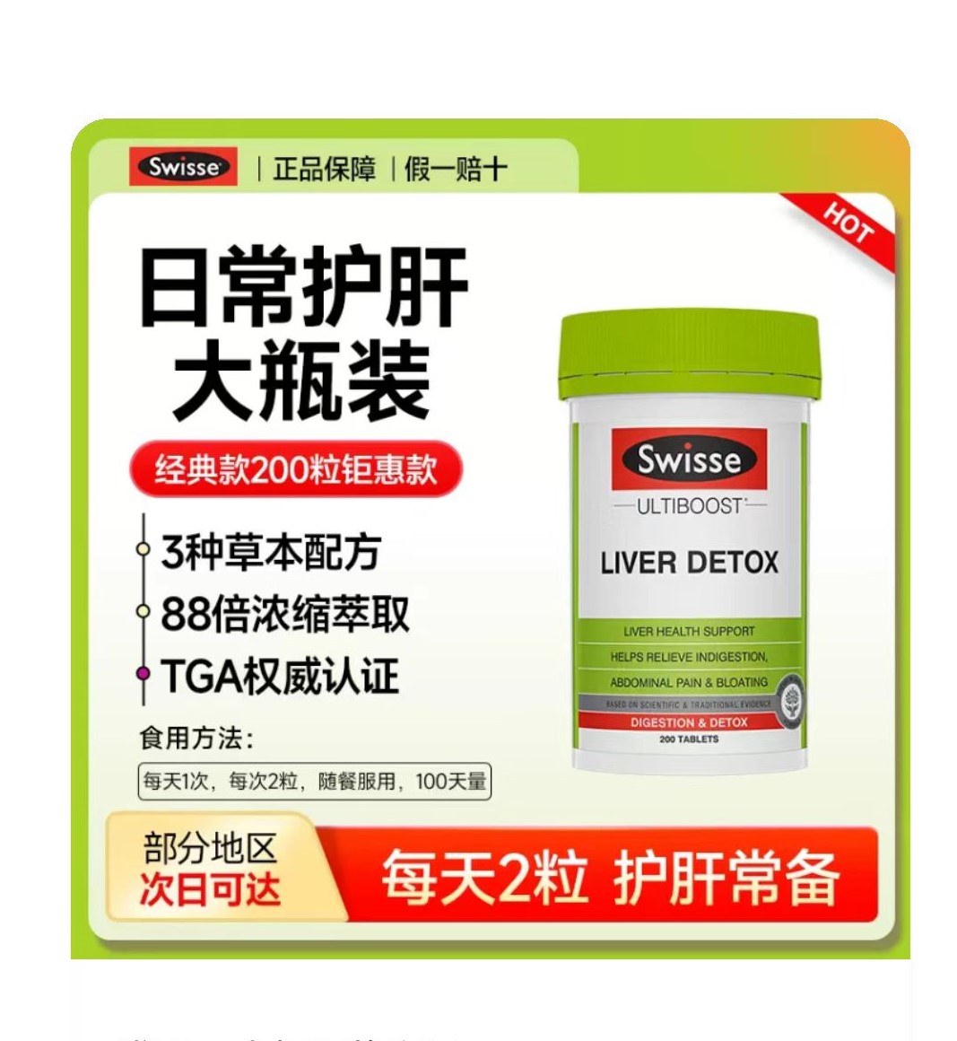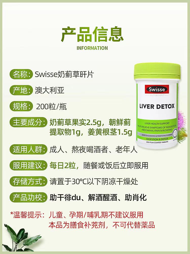 swisse澳州進口官方正品奶薊草護肝片男女性熬夜保健品 200片/瓶 每天2片 質保3年